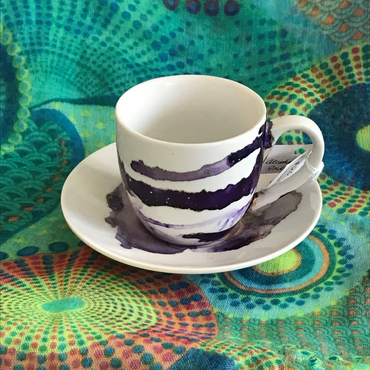 Judy lives in Kelowna and paints in Alcohol Ink. She appreciates its vibrant pigments, saying that no other medium gives her "the same thrill". Judy is a non-traditional artist favouring abstract form. ArtrameR features a few of Judy's painted cards and cups and saucers, and you can contact her regarding other items: